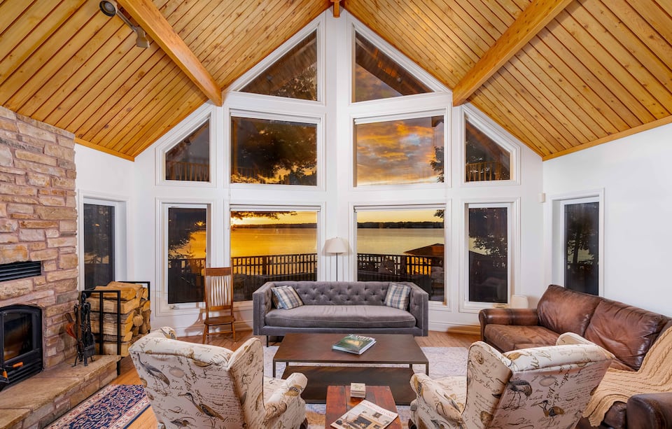 Welcome to our family cottage! This immaculate and spacious 'A' frame, four-season home is located on 100 feet of Balsam Lake waterfront. Our aim is for you to walk in, unpack and enjoy our cottage, with a hot tub, a canoe and three kayaks, along with adult life jackets.